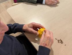 Une activité qui fait travailler la motricité fine, l'éveil des sens, la convivialité, et qui nous réoriente dans le temps avec des discussions autour de Noël qui arrive à grands pas ! 🎄