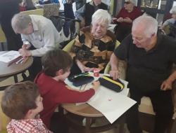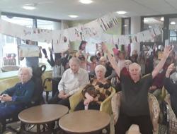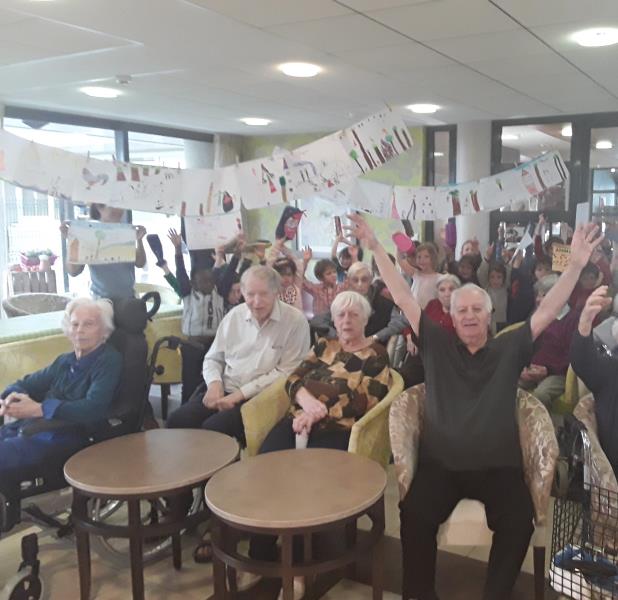 Vendredi après midi les résidents ont accueilli la classe de Marie-Laure (Ecole des Bruyères, Sèvres) et les Conteuse de Sèvres, l'écoute de belles histoires nous a permis de réaliser une belle grande lessive tous ensemble !