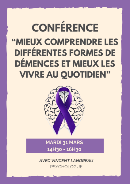 Cette semaine, nos résidents ont pu assister à une conférence sur les démences, comment mieux les comprendre et mieux vivre avec, animée par Vincent Landreau, psychologue. Cette rencontre a été source d'échanges riches avec les résidents qui ont pu poser leurs questions et partager leurs expériences.