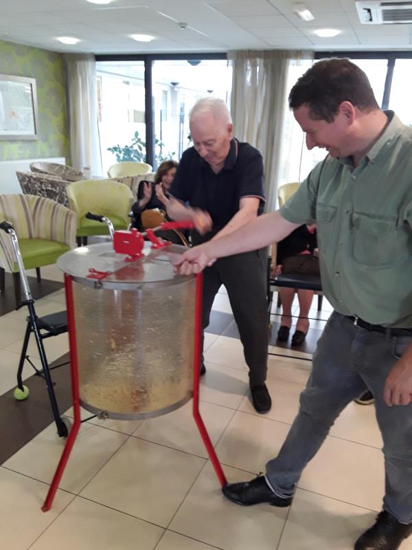 Hier, notre apiculteur, Monsieur ORSELIN a réalisé un atelier extraction de miel à la résidence