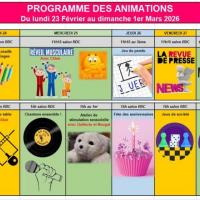 Publiée le 20/02/2026Chères familles et proches, Voici le programme des animations de la semaine prochaine. Je vous souhaite un très bon week-end ! Lire la suite