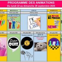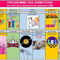Publiée le 22/09/2025Chères familles et proches, Voici le programme des animations de la semaine qui annule et remplace celui mis en ligne vendredi. Bonne réception ! Lire la suite