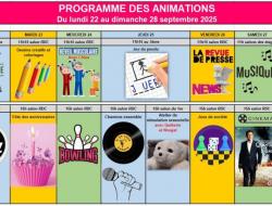 Voici le programme des animations de la semaine qui annule et remplace celui mis en ligne vendredi.
