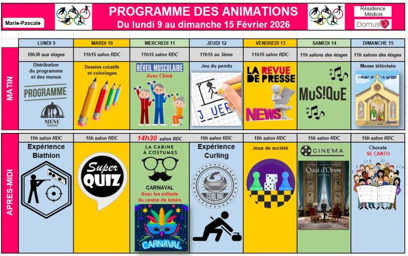 Programme des animations du 9 au 15 Février